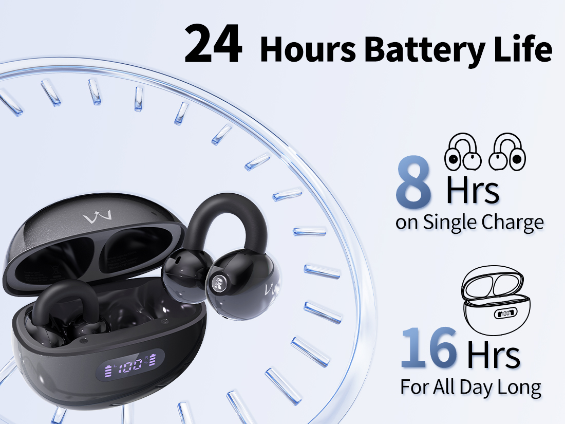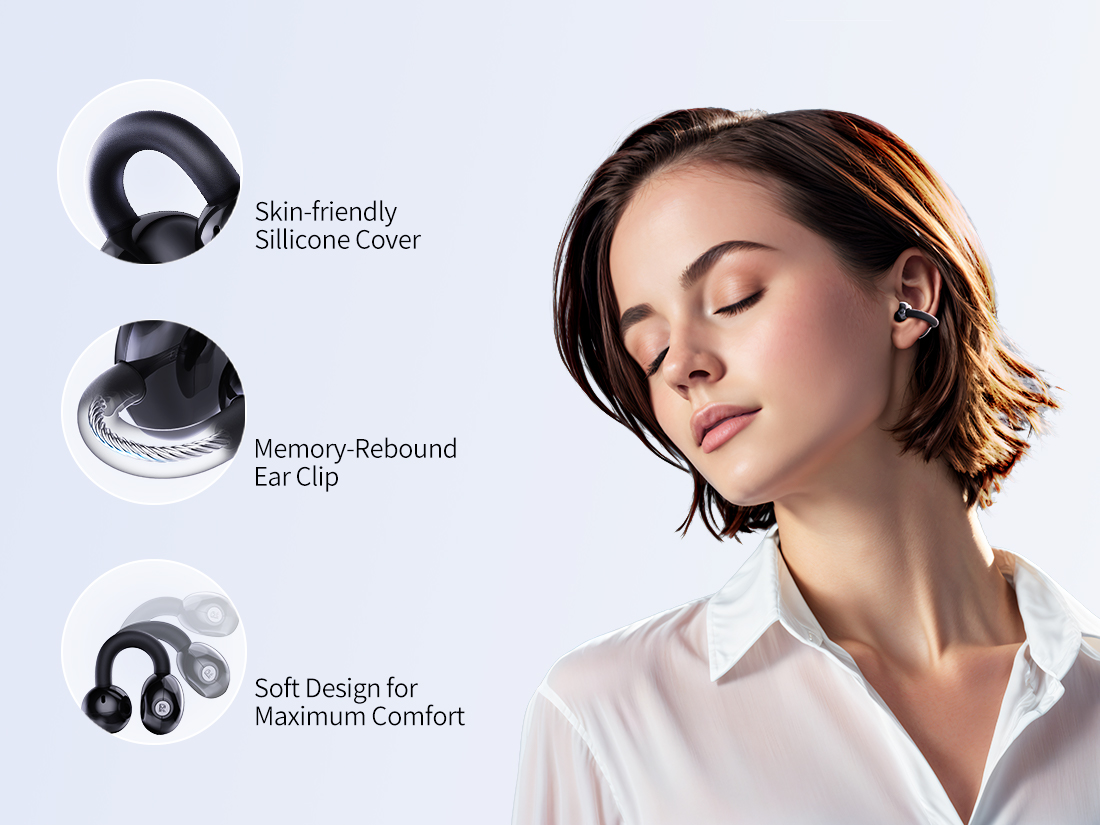 iWALK open-ear clip headphones are made of ultra-lightweight and skin-friendly material, only 4.5g for a single earbud, making them comfortable to wear for long periods of time.